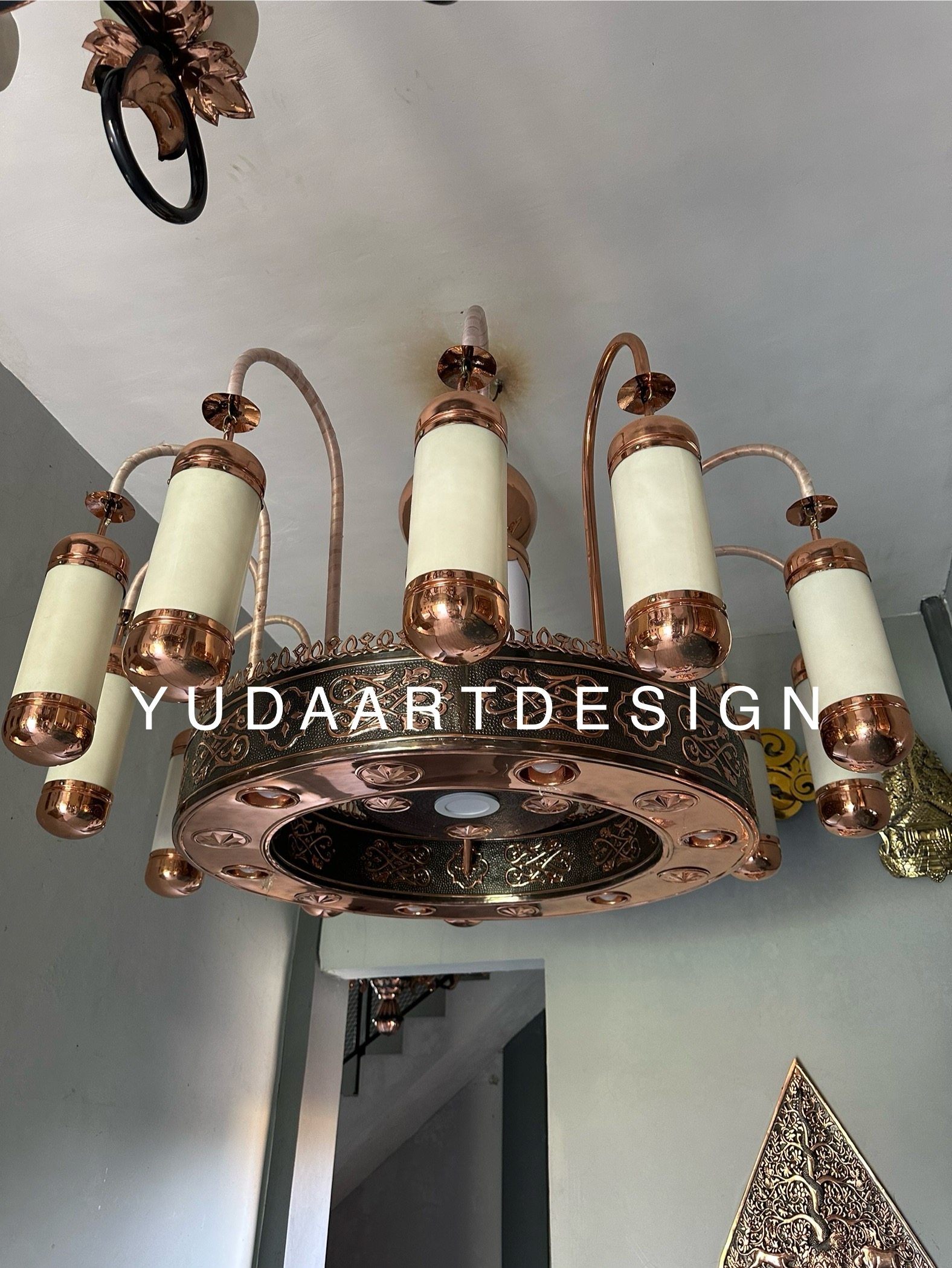 Wujudkan impian pencahayaan Masjid yang spiritual dan elegan dengan Lampu Gantung Nabawi Tembaga custom berkualitas kami.