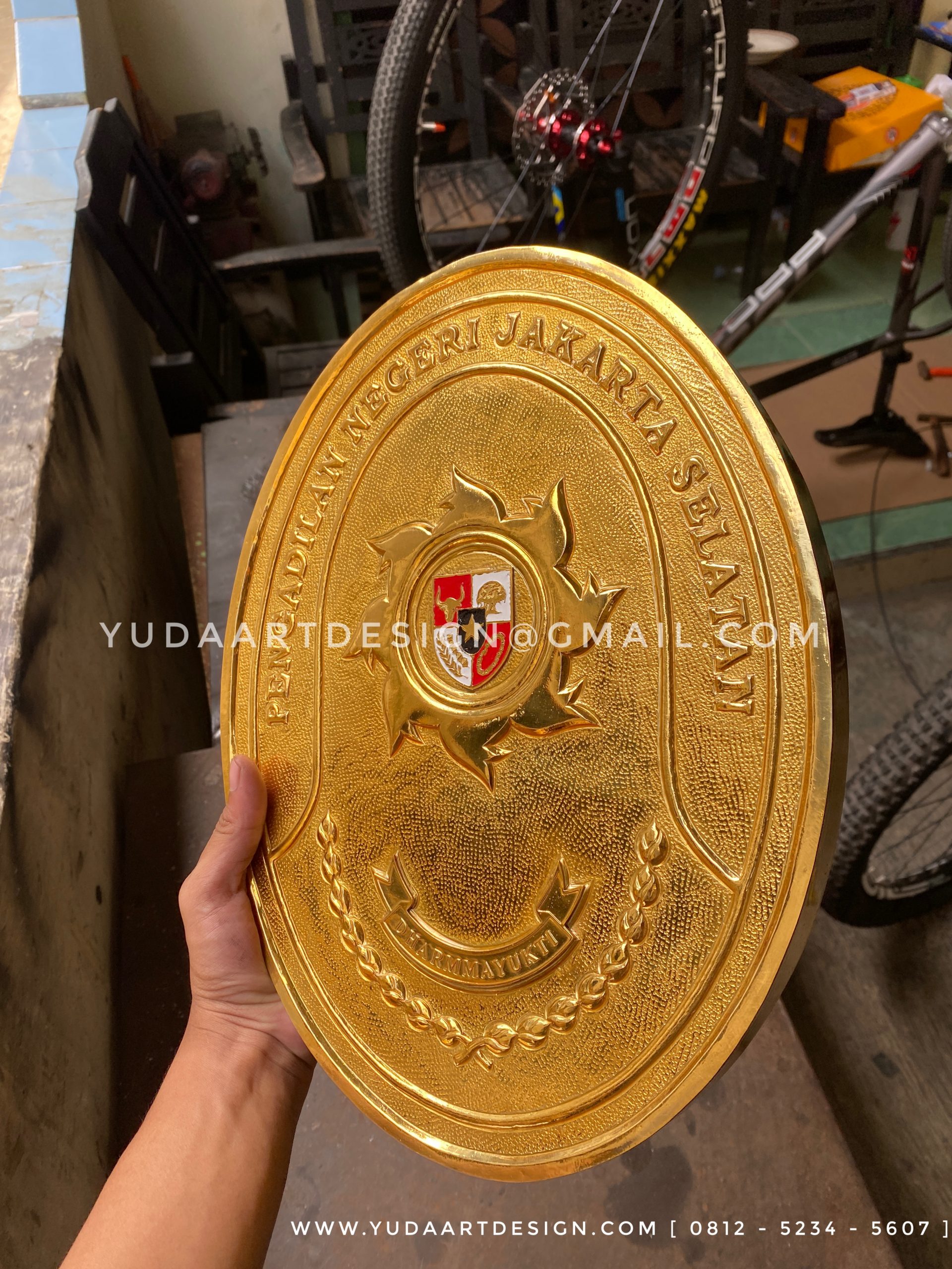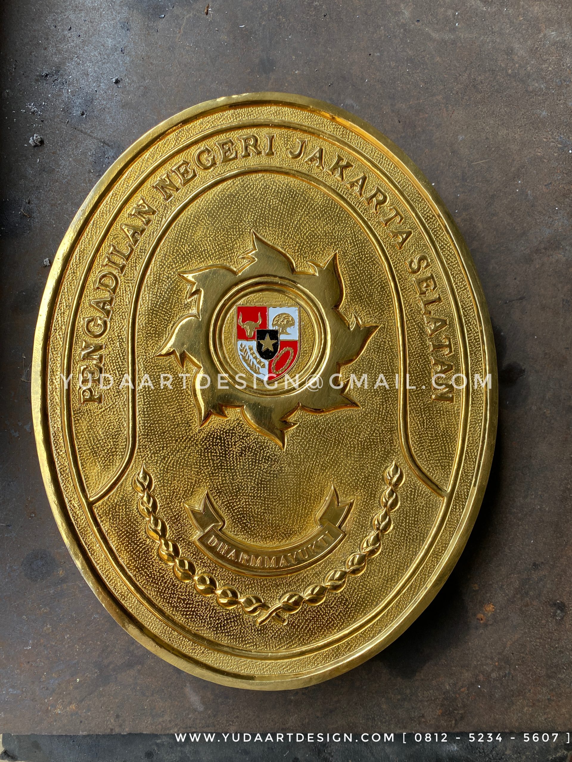 Logo Pengadilan Negeri Jakarta Selatan dari kuningan ini sangat elegan dengan warna kuning emas. Logo kuningan ini di pesan salah satu anggota pwngadilan negeri di jakarta selatan. Logo kuningan ini sangat terjangkau harganya. Selain itu logo kuningan sangat mudah pemasanganya. Kami pengrajin asli pembuatnya di Boyolali. Jika anda ingin memesan logo kantor, perusahaan, lembaga, atau logo lainya langsung saja hubungi kontak kami yang sudah tersedia. Kami juga melayani logo custom produk yang desainya sesuai permintaan konsumen. Terimakasih salam sukses dan terimakasih atas kepercayaanya.