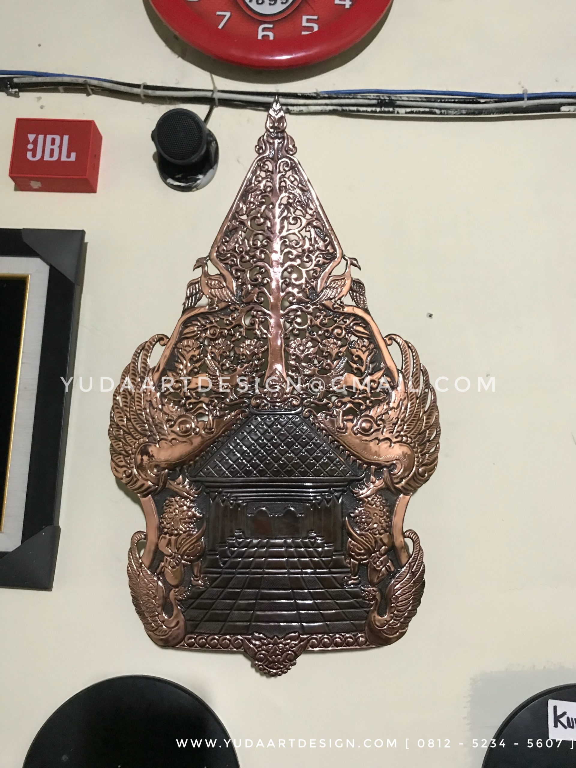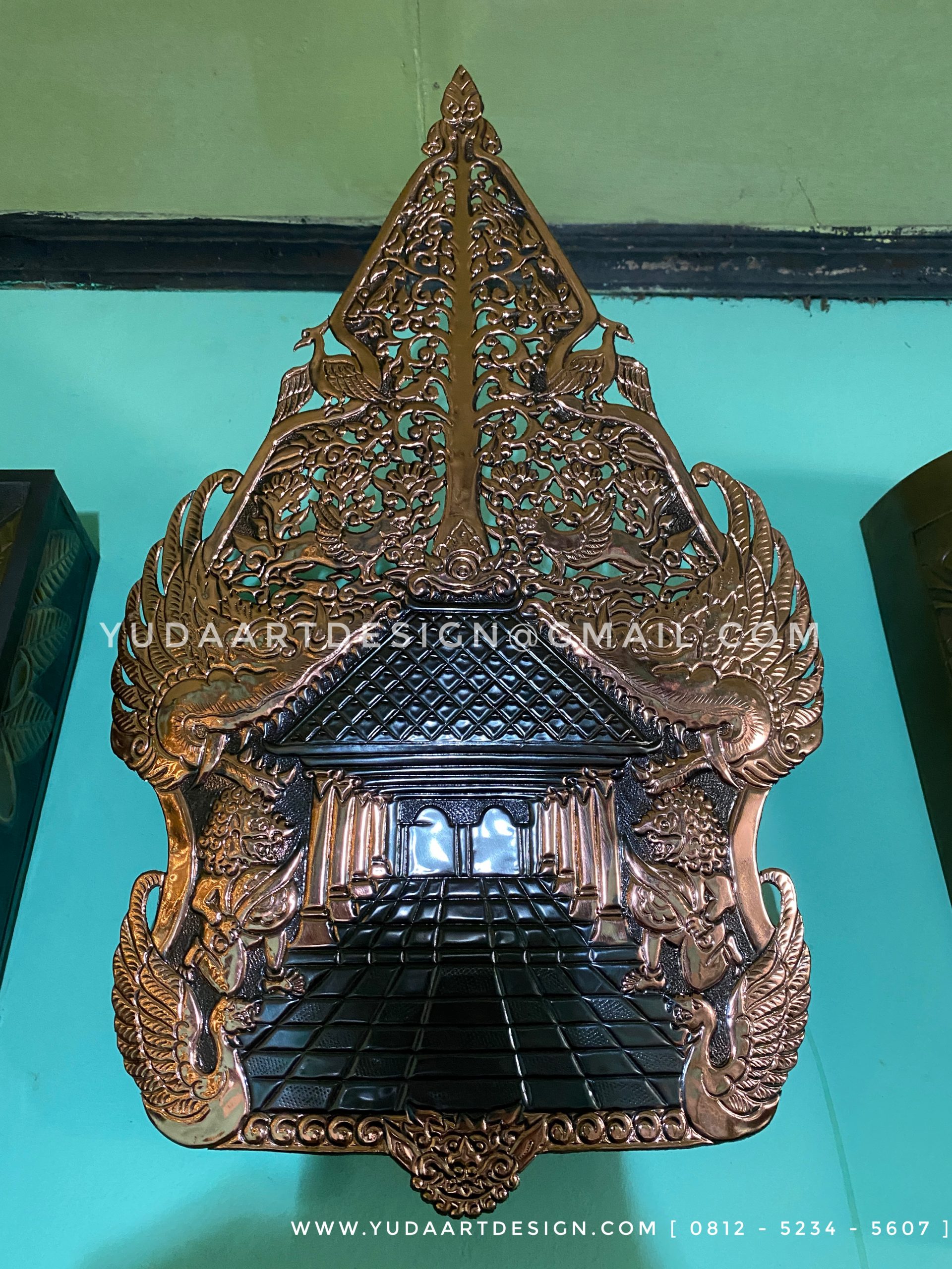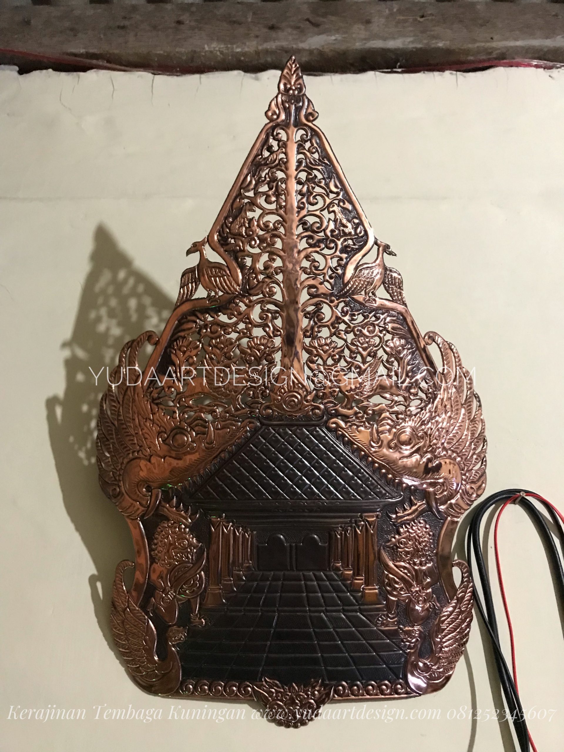 Gunungan Tembaga adalah salah satu produk yang sedsng dicaari saat ini, motif gunungan wayang cocok untuk hiasan dinding rumah joglo atau suatu tembat dengan desain klasik. kami menyediakan ukuran dari yang kecil sampai yang besar sesuai dengan keperluan, untuk yang kecil biasanya dipakai sebagai lampu dinding dan yang ukuran besar bisa untuk hiasan dinding maupun sebagai landmark suatu tempat.