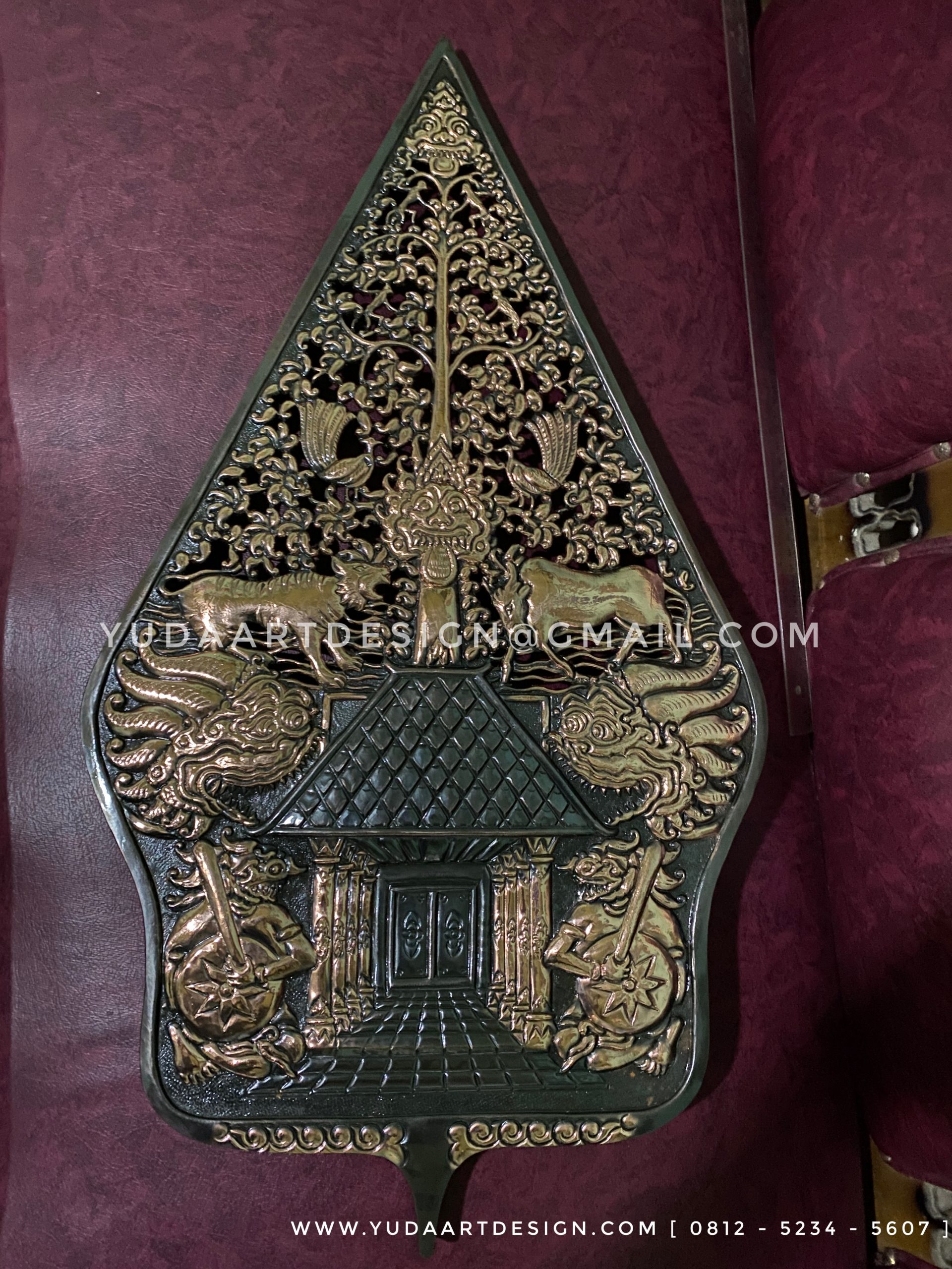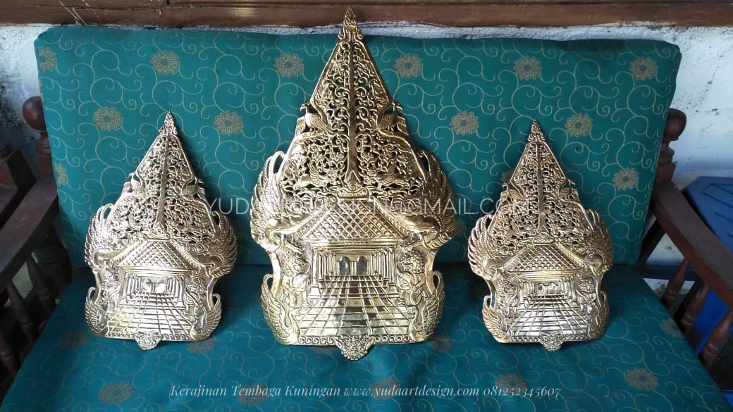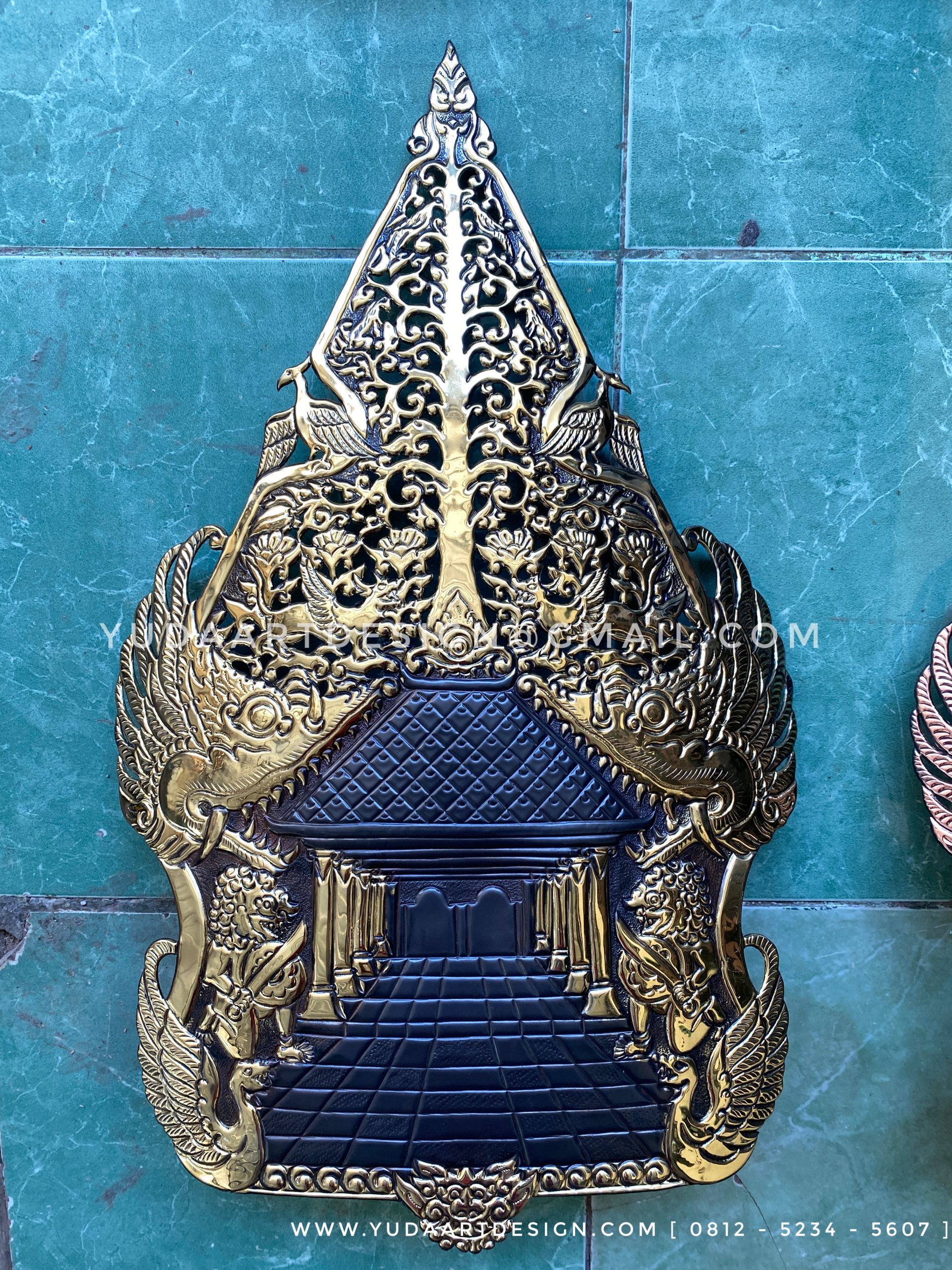 Gunungan Tembaga adalah salah satu produk yang sedsng dicaari saat ini, motif gunungan wayang cocok untuk hiasan dinding rumah joglo atau suatu tembat dengan desain klasik. kami menyediakan ukuran dari yang kecil sampai yang besar sesuai dengan keperluan, untuk yang kecil biasanya dipakai sebagai lampu dinding dan yang ukuran besar bisa untuk hiasan dinding maupun sebagai landmark suatu tempat.