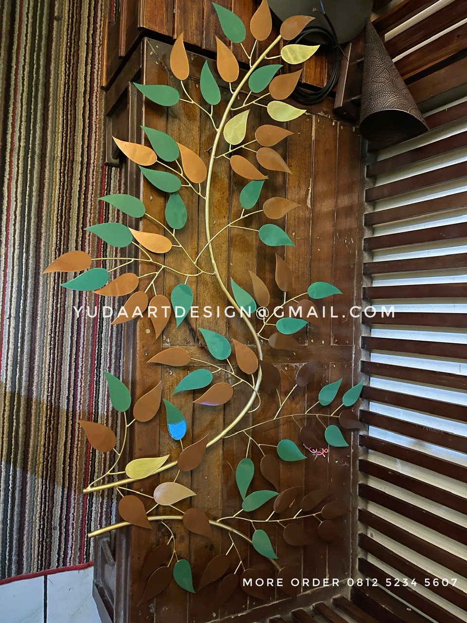 Wall decor Kuningan motif daun membuat ruangan anda bernuansa alam serta finishing coklat oksidasi yang membuat menjadi klasik, dengan design simple dan elegan cocok dipasang di Hotel, Villa, Bahkan Rumah pribadi.